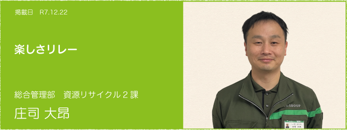 今回は資源リサイクル2課の庄司大昂さんにお話を伺いました。