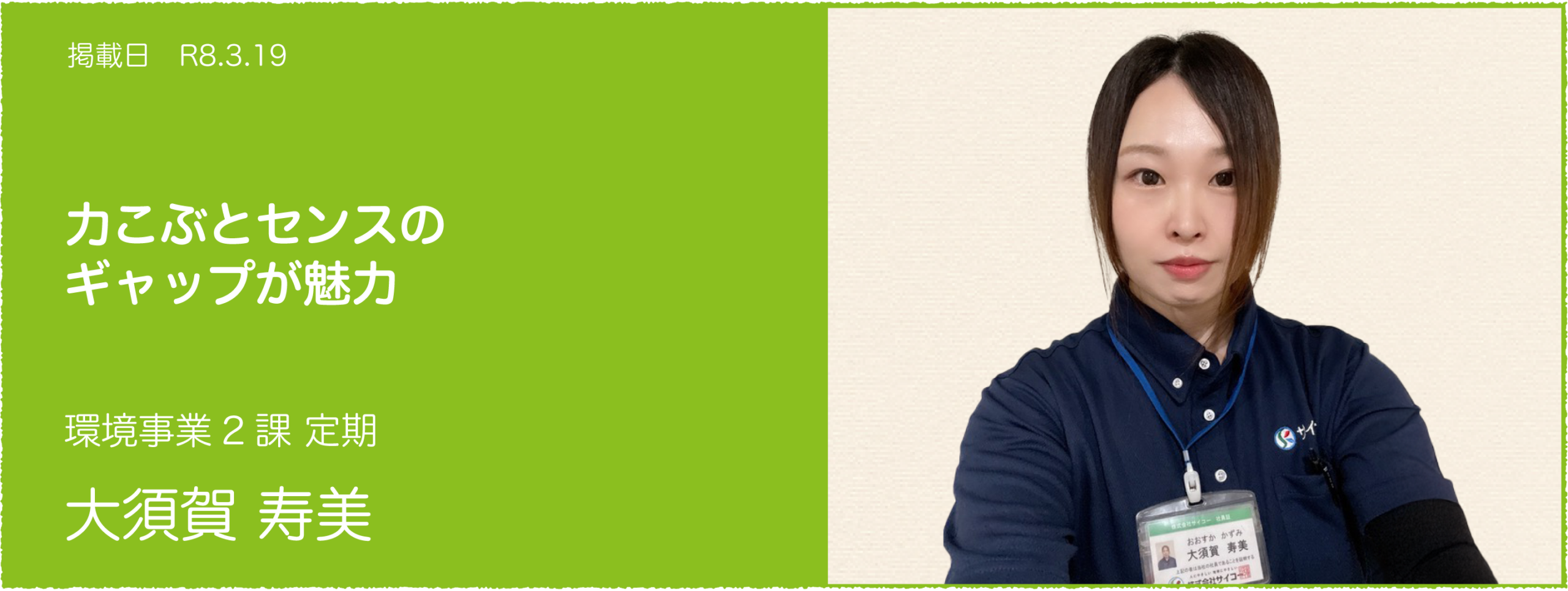 未経験から挑戦し、現場で信頼を積み重ねてきた背景や、仕事への誠実さ・お客様への寄り添いがよく分かり、改めて大須賀さんの魅力を感じました。